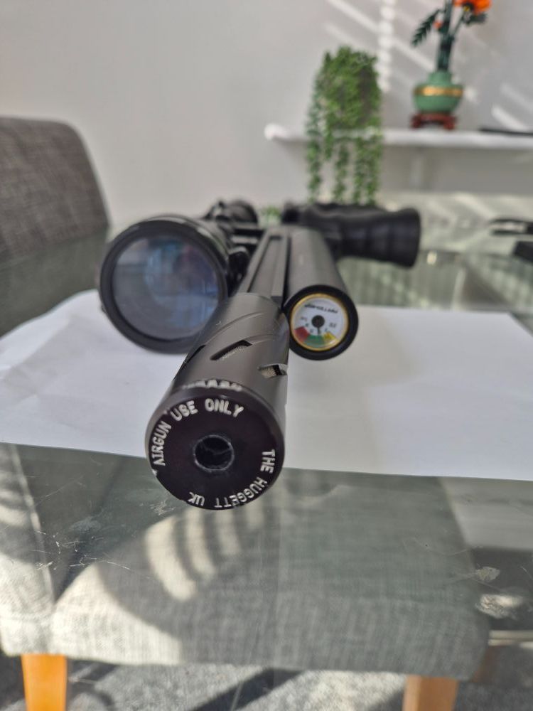 As above pp700s-a .22 pistol comes with fill probe, nikko Stirling mountmaster 4-12x50ao, mounts, huggett silencer (marked where taken apart ), folding stock spare, Bob Pattenden (i think his name is )fully adjustable stock for length, cheek piece height and shoulder height (none folding), no original pistol grip, box for pistol with spare o-rings and hills foot pump. Collected Manchester M22