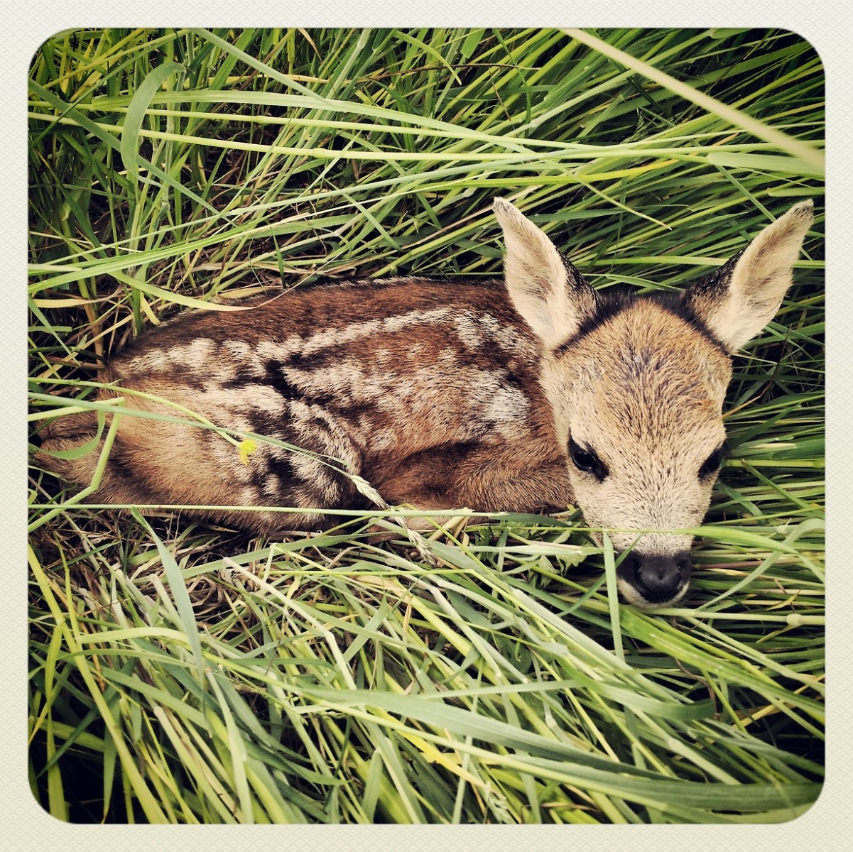 Was out walking the dogs, and spooked the mother, only she didn't run, but kept stopping. Realised she had young and then stumbled on it a few steps later! Been watching it grow since I knew it was in the area, and it's getting bigger already!
