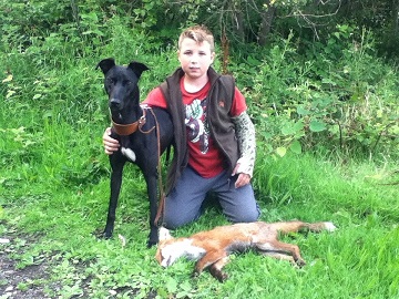 my son with his 18 month old bitch with his first red taken on permission in the north east broke his arm the day before the holidays and it made him keener out everynight cant fault him ;-)