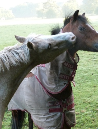 caught this shot of 2 horses havin a peck, in the morning.