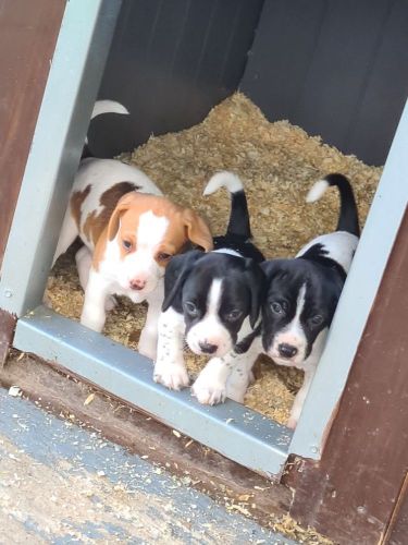 Spare Beagle/Spaniel/Russell pups, 3 dogs. 2 black and white 1 lemon/brown and white Sire is beagle/Spaniel x Russell Dam is Beagle/Spaniel mix Both parents beagle sized. Both dogs have good voice Pups will be ready mid september Wormed, vet checked, first vaccination and microchipped, If you take the pup back to an Abbey Vets the second jab will be a fiver.£400