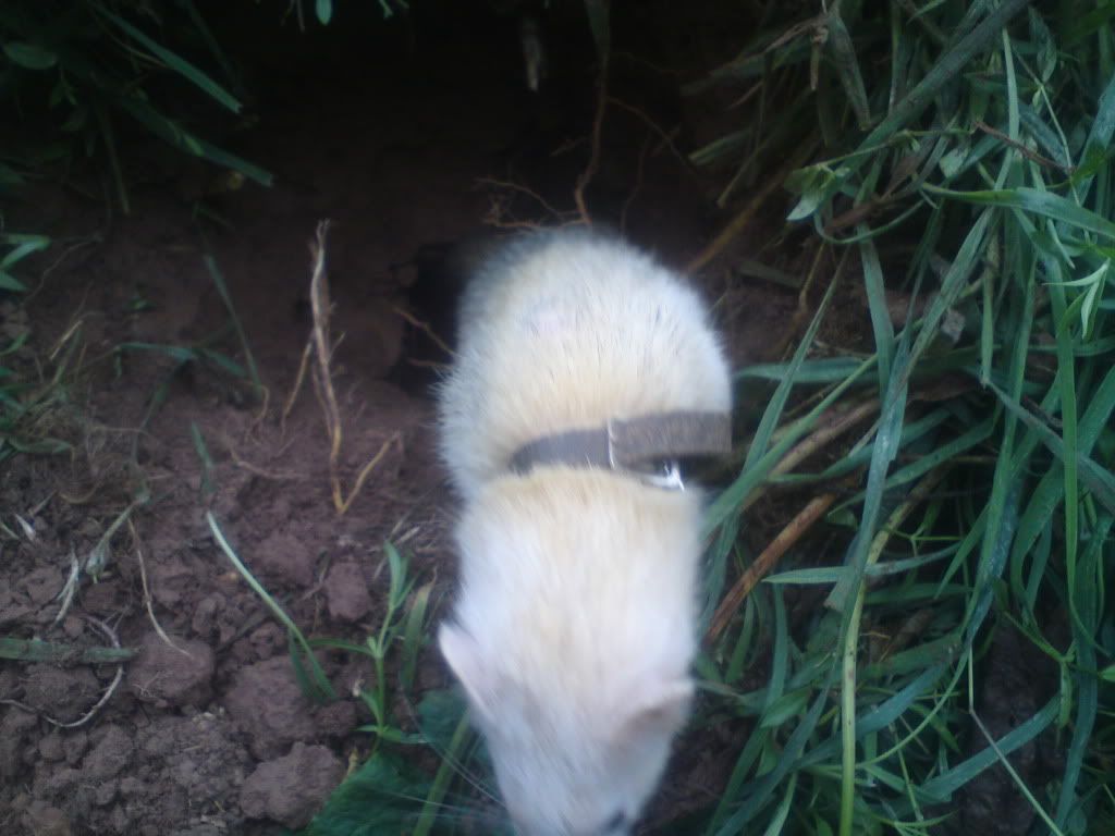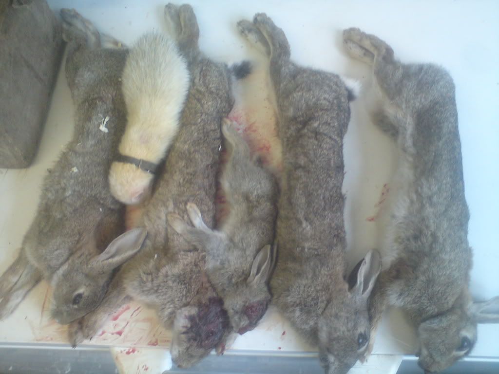 Ideation 8,217 Posted September 5, 2011 Report Share Posted September 5, 2011 Took the dog out for a couple of hours after work and decided to take a jill and some nets as usual. Went for a walk in some woodland, not much about to start, but then went over a fence and almost jumped on top of the dog who jumped over, only to stop and mark a hole at the base of a tree (that the fence was nailed to). Found a couple more holes on the fence line, and dropped the jill in, quiet for a bit then banging and the first rabbit bolts into a net. Quiet for a bit more then squealing by the tree, coming from a small half hole i hadn't noticed, cleared it out and grabbed what i thought was bunny, but was the jill, who looked pissed off and shot back down, stuck a net on the half hole, and then couple of mins later the second bunny bolts into another net, minus one eye, with the jill on it's arse. Walked on for a bit and got some more marks, but in spots i couldn't be arsed to do on my own with the cover up. Then had a nice mark on a six hole set under some brambles and a fallen branch, but not too bad. Netted up and dropped the jill in, bit of banging and the rabbit starts to creep out, sees my foot (sloppy!) and turns to go back down, then a loud squeeling as it meets the jill head on and she stops it in it's tracks with a nose hold (i fecking love that ferret), so no dig to that one, just reach in and pull out bunny with ferret attached to it's face. Very impressed the small jill has stopped a rabbit more than twice her body weight head on. Jill scuttles back down, runs about for ages and then get a solid mark, couple of feet down, unfortunately only a little un. Bit further on, dog starts getting keen, following a scent line, right into a nice two holer, net up, ferret in, goes very deep, i leave the ferret and dog to it and go sit down, rabbit bolts, dog holds it well until i get off my arse, despite having a ferret climbing on him. Walk home. A nice two hours out. Atb. The one stopped by the nose hold. 1 Quote Link to post