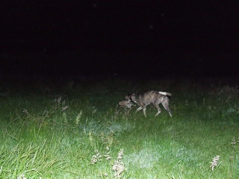FERRETBOY 680 Posted June 22, 2007 Report Share Posted June 22, 2007 me and my dad decided that we'll go lamping on some new permission.all the rain we've had made the ground good for running the lurcher on.this place has a fare amount of rabbits and there doing quite abit of damage to the locals gardens.the first field we enterd had patches of grass about 2ft high which made it harder for the lurcher to catch and for us to lamp as the rabbits kept using the long patches of grass to run through.the first rabbit we lamped made easy its escape as bramble ran to the wrong tuft of grass. sorry about some of the pics there not the best. the next rabbit wasnt so lucky as bramble worked hard to keep it in sight and picked it up well. that was it for this field but she took two more in the next field which was very similar to the first field. on the way back to the car we lamped a field which was pretty much just soil with patches of grass and alot of red rubys in it we took two more of here and called it a night. not a bad night for an hours work but i dont think bramble would agree as she was shattered. good hunting rew Quote Link to post