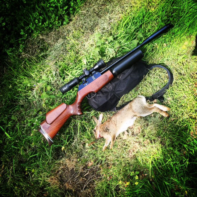 Rez 4,961 Posted May 15, 2016 Report Share Posted May 15, 2016 As though everyone weren't out on the game this afternoon and yesterday, I trekked it up too. Managed a quick rabbit after checking all my kit was in order, in a lovely wooded area... the pong of spring flowers was high. This wooded area was were I grabbed my first ever rabbit 3 years ago on this perm, so it was a nice place to start this afternoon. The chance was there to take a quick pic beside the tree I used as a support, you cant see the rabbit but its at the base of the far big tree in the centre of the pic,, I did forget my range finder though, annoying, but gave it about half inch to the left with the wind and the pellet struck the high neck area. The rabbit jumped with shock, as they sometimes do and lay still. I bumped into the landowners old man and offered him it, knowing he'd say no, but the sod only saw it as a good slow cooker sized rabbit and happily took it off me. I headed over to the usual 'hide' area with my favourite trees and took two birds. One in particular took a pellet to the back of its head and I swear it thought it had just fallen to sleep. 2 Quote Link to post