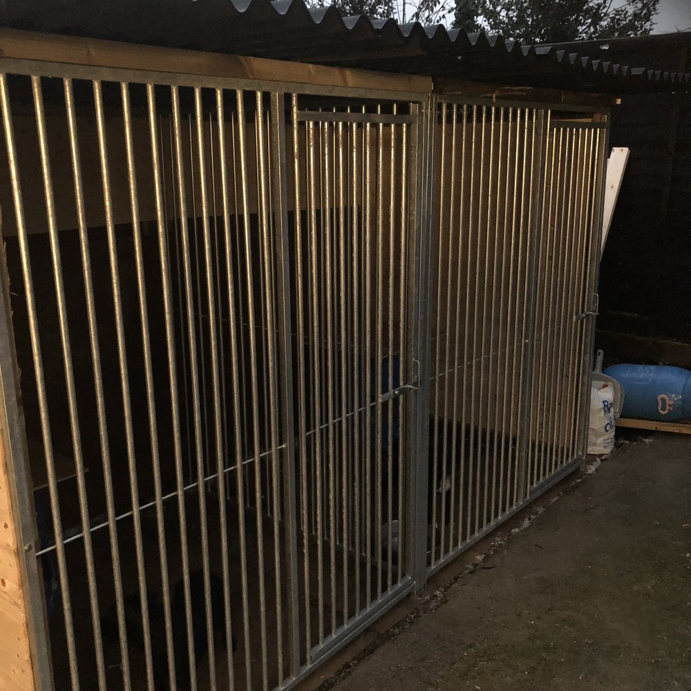 Door is perspex I made the pens too they are 8ftx3.5ft kennels measure 650mm x450x500mm inside if I'd had more time I'd of put drains in the Penn's hope to add 1 more Penn, wife thinks the space is left for a bike shed