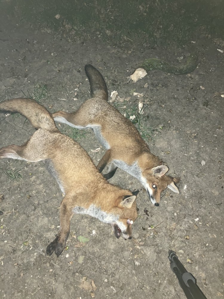 Squirrel_Basher 17,102 Posted September 11, 2020 Report Share Posted September 11, 2020 Out tonight on the chicken farm ,usual place and straight away there’s Charlie walking towards me along a badger track .On sticks ,tiny squeak and wallop he’s down .Nice sized dog fox .On a bit and there’s another just come into the field way over the other side about 400m .Wind was right so I had a squeak .Not usual for here as they get preoccupied looking for chicken that are unfortunate enough to get locked out .This green fox came trotting in like a dog and I stopped him about 100 yards to join the other .Long wait for the last customer but worth it for the longest shot at night to date .I missed it at about 180 ,or so I thought ,it ran to the corner of the field where there’s a muck heap and stopped in front of it long enough to get a shot off .Down it went and on pacing it out found it to be 334 paces .The first shot had been a bit hurried and gone through the base of the ear ,how it never knocked him out I’ll never know . Another good night and few chicken saved come dawn . 12 Quote Link to post
