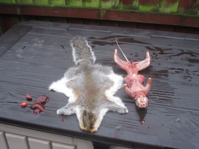 Put up a new feeder last weekend in my 300 acre permission. Went yesterday to see if many have been feeding , arrived at 45 yard hide and spotted 7 squirrels feeding on the spilled wheat on the ground + one actually on the feeder . Stood watching them fighting with each other over food . Anyhow  walked over to see how much of the wheat had gone , in fact most of it , so topped it up ready for today . Arrived about 1pm , saw one on the feeder , so prepared myself in the hide I made , ready for squirrels. Slow going today , five in three hours . Unfortunately left my phone at home , so pic taken when I got home