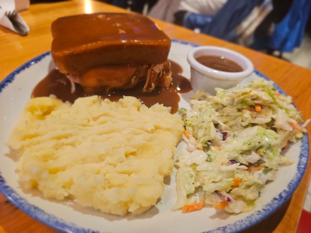 mackem 30,466 Posted 4 minutes ago Report Share Posted 4 minutes ago 22 minutes ago, Franks dad said: Chicken Went into a diner on the quebec side ordered a chicken sandwich and coffee "There's two sides with that,what would you like sir?" (Sides with a sarnie?OK,mashed potato & slaw,I expected them to come separately in small dishes)the chicken sarnie turned up like this----Covered in gravy.Tasted really nice but I don't think they get the concept of chicken sarnie. Quote Link to post Share on other sites