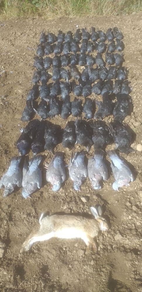FOXHUNTER 5,021 Posted September 28, 2022 Report Share Posted September 28, 2022 That is the voice mail I got on my phone. Seeing as I cant stay in I had a couple of hours this morning . Pulling up in the farmyard I spotted 2 squirrels chasing each other so I grabbed my gun and got a right and left I thought it would be a male and female but know it was 2 females. As I was trudging up the field I spotted a rabbit which was also added to the bag. Set up on fresh drilled barley and the birds decoyed brilliantly. I shot 2 rooks with 1 shot ....the pair were gliding in lovely side by side so waited until they were about 20 yds away and lined the pair up , both fell out of the sky together Ended on 81 birds , 2 squizzers and 1 rabbit for 100 cartridges....and about 6 cartridges were used on finishing off wounded birds. Not too shabby I thought 1 Quote Link to post