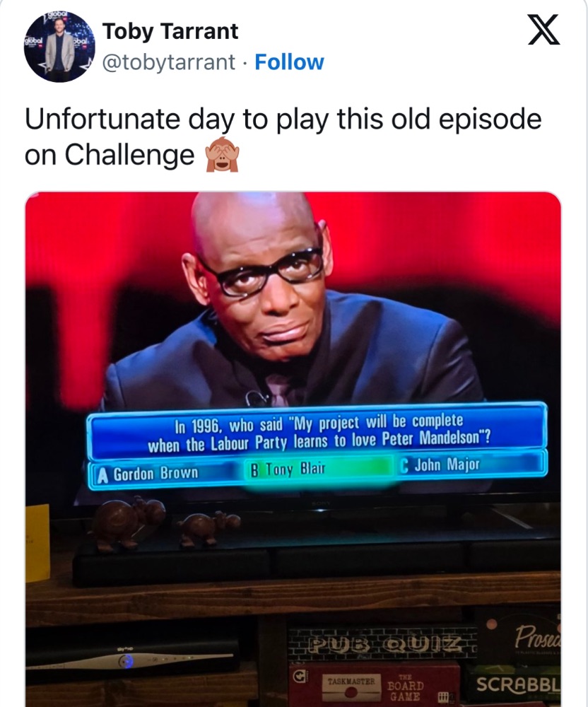 Welsh_red 5,126 Posted 19 hours ago Report Share Posted 19 hours ago Keir starmer getting rinsed and hes admitted to knowing mandelson was friends with epstein after epsteins court case and then still employing him Quote Link to post Share on other sites